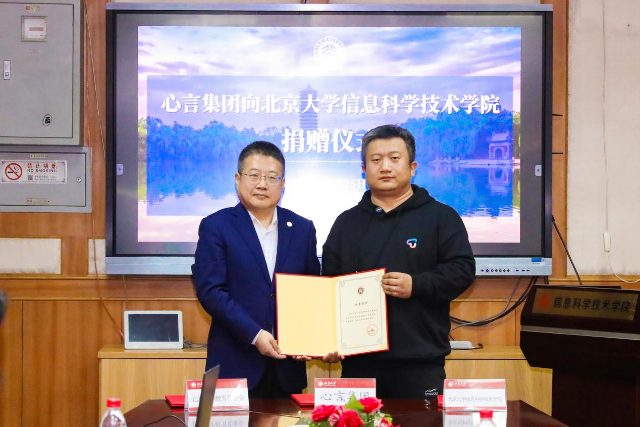 捐赠仪式在燕园校区理科二号楼2111会议室举行。心言集团捐资支持91Porn