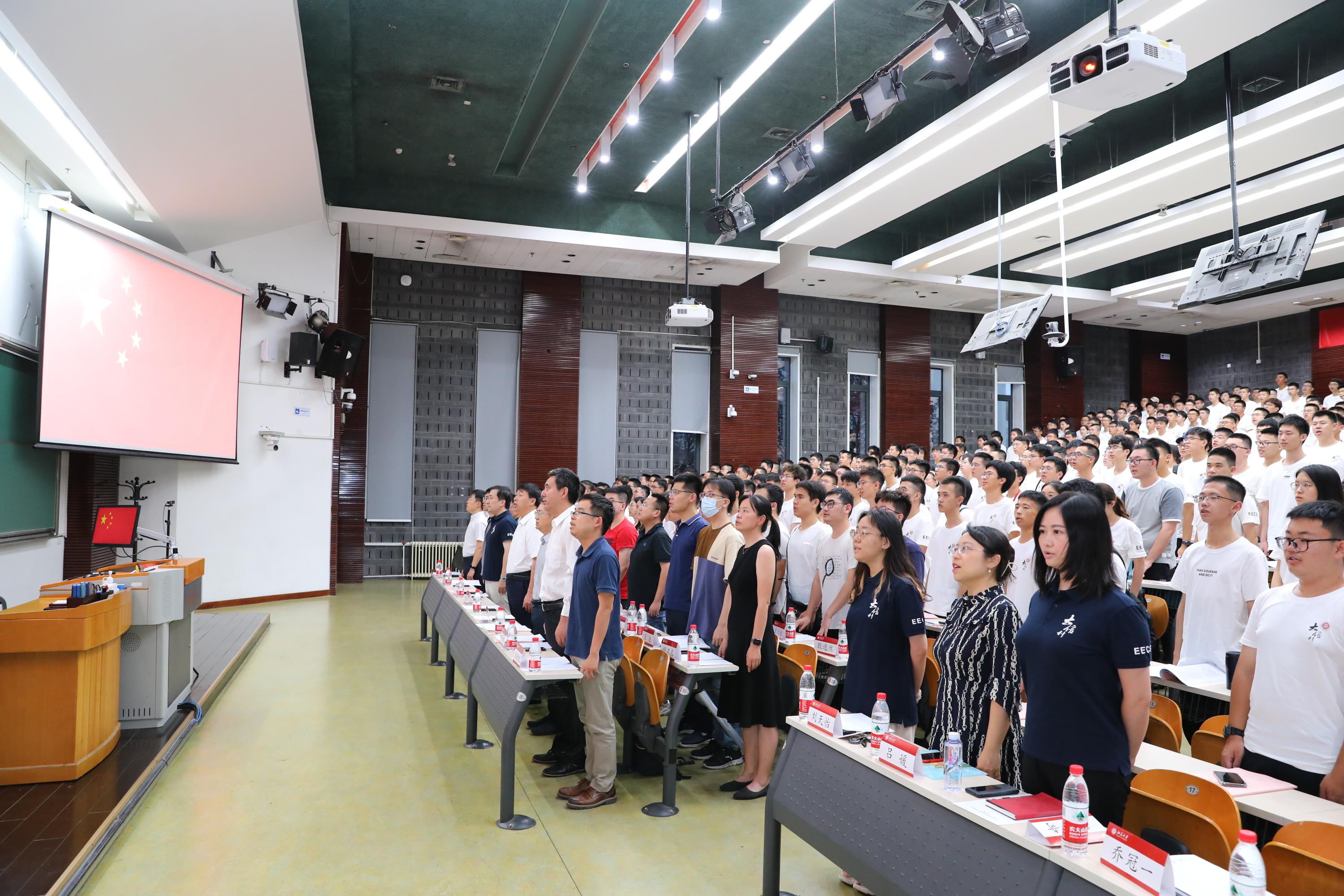 在大会的尾声,全体师生合唱《燕园情》,共同唱响了北大人心中的那份深情。“眼底未名水,胸中黄河月。”高亢的旋律余音绕梁,激励着新生们成为一名合格的信科人、北大人,不忘初心,勇担时代使命。