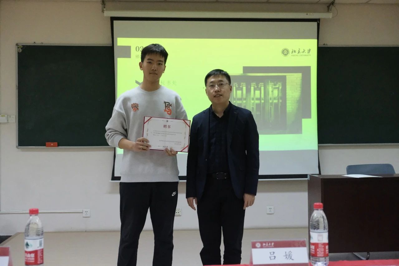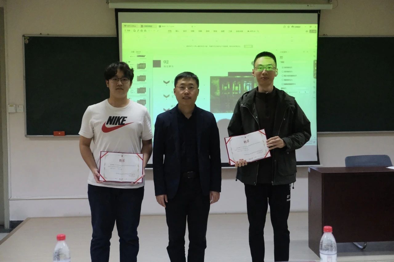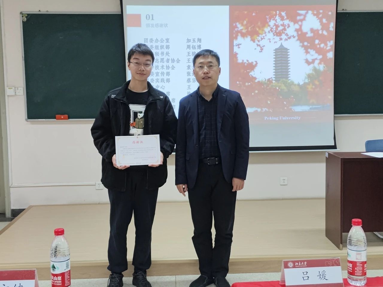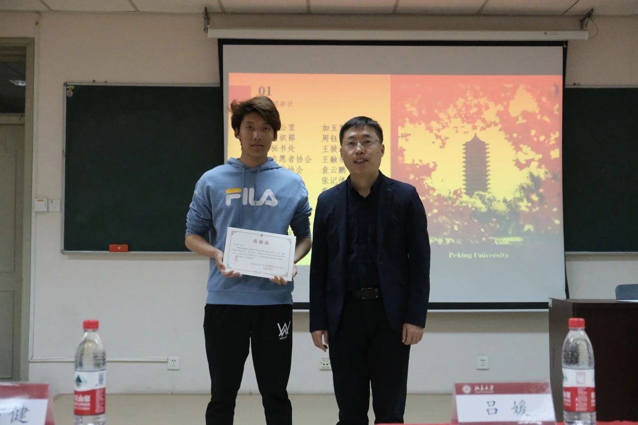 贾方健老师为刚刚卸任的团委各部门负责人及学生会主席团成员颁发感谢状。