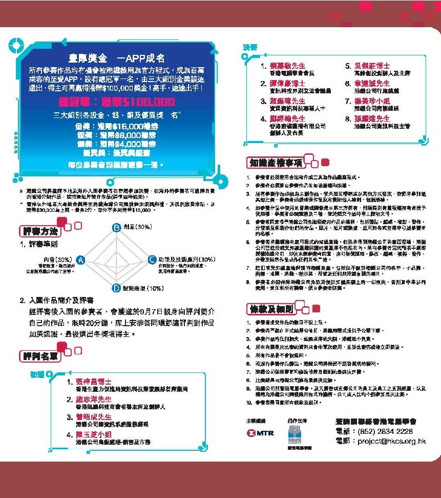 港铁集团正在举办一场APP征集大赛,设定了六个主题,奖金金额高达10万港币。有兴趣的同学可以通过以下PDF附件了解具体情况并报名参赛。
