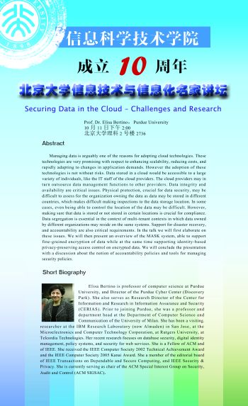 主讲人:Prof. Dr. Elisa Bertino, Purdue University