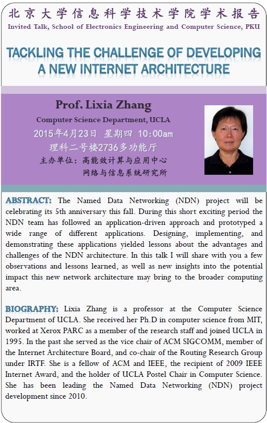 4月23日: Tackling the Challenge of Developing A New Internet Architecture
